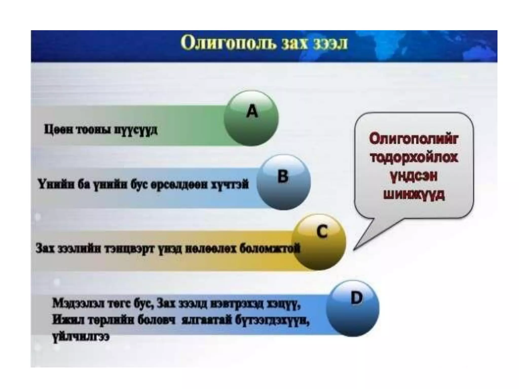 тодорхой бус байдал зэргээс шалтгаалан олигополь