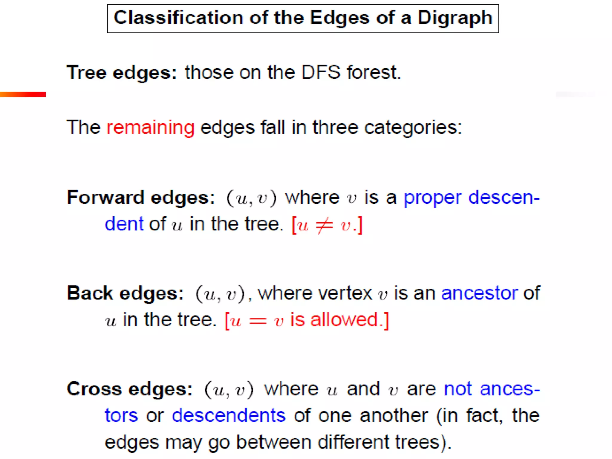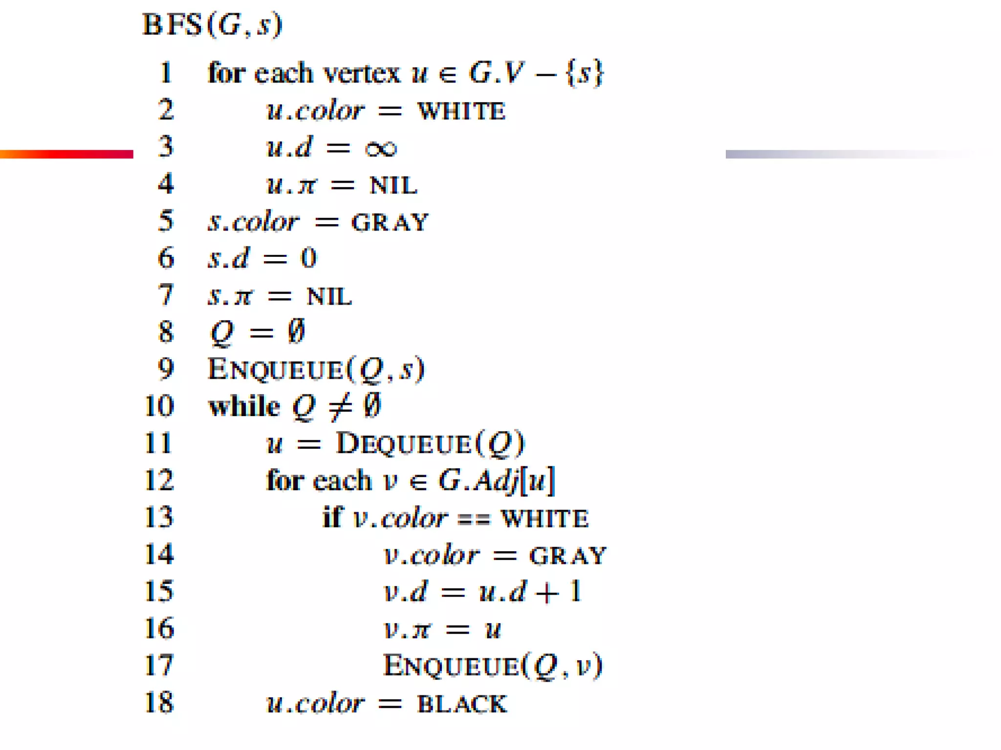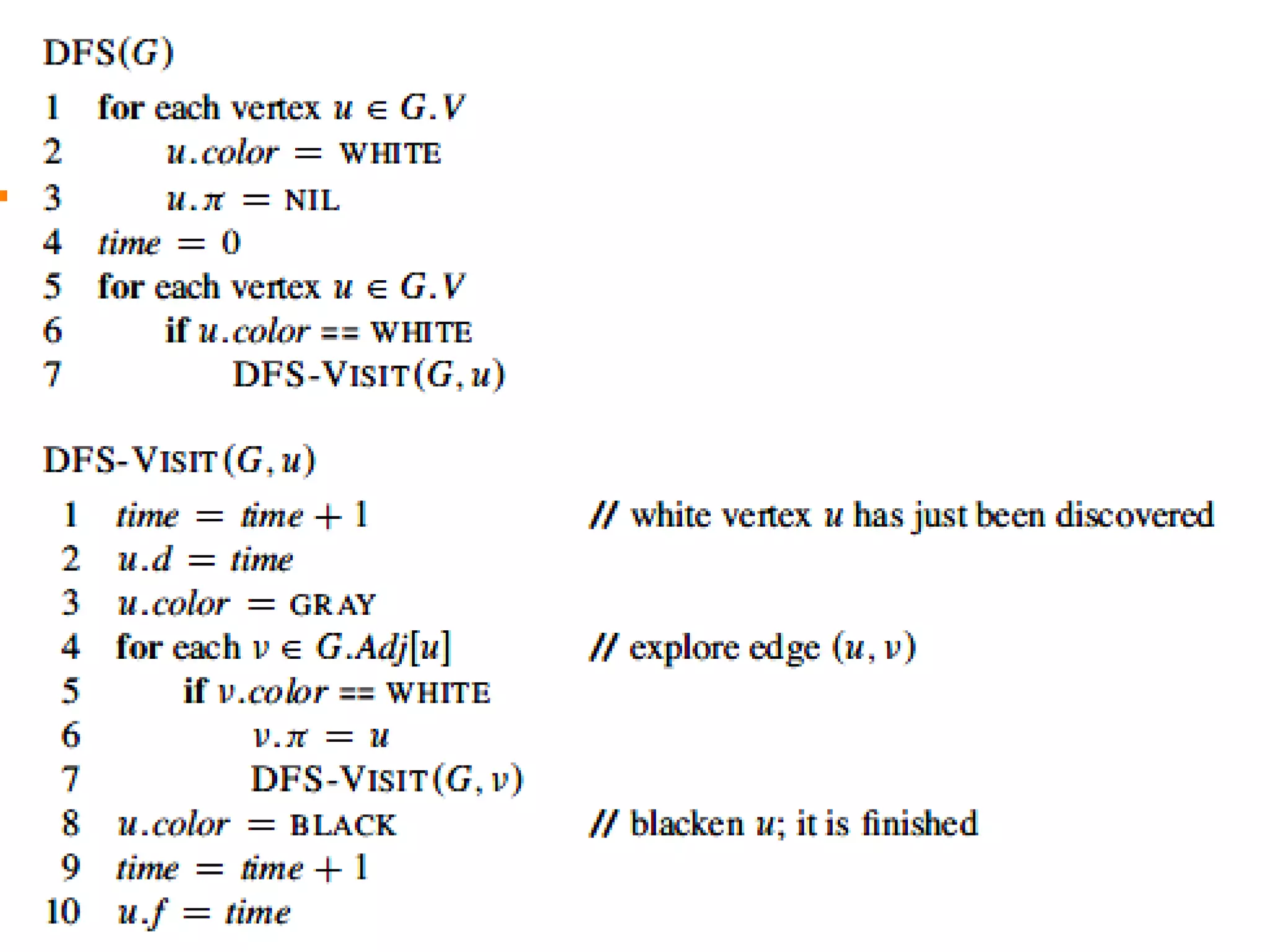 This document defines key graph concepts like paths, cycles, degrees of vertices, and different types of graphs like trees, forests, and directed acyclic graphs. It also describes common graph representations like adjacency matrices and lists. Finally, it covers graph traversal algorithms like breadth-first search and depth-first search, outlining their time complexities and providing examples of their process.