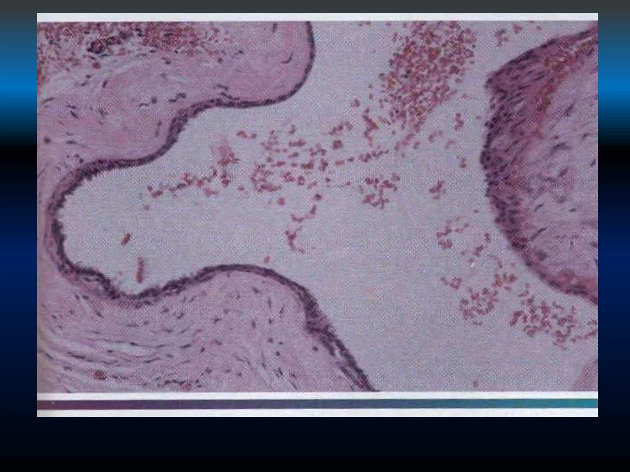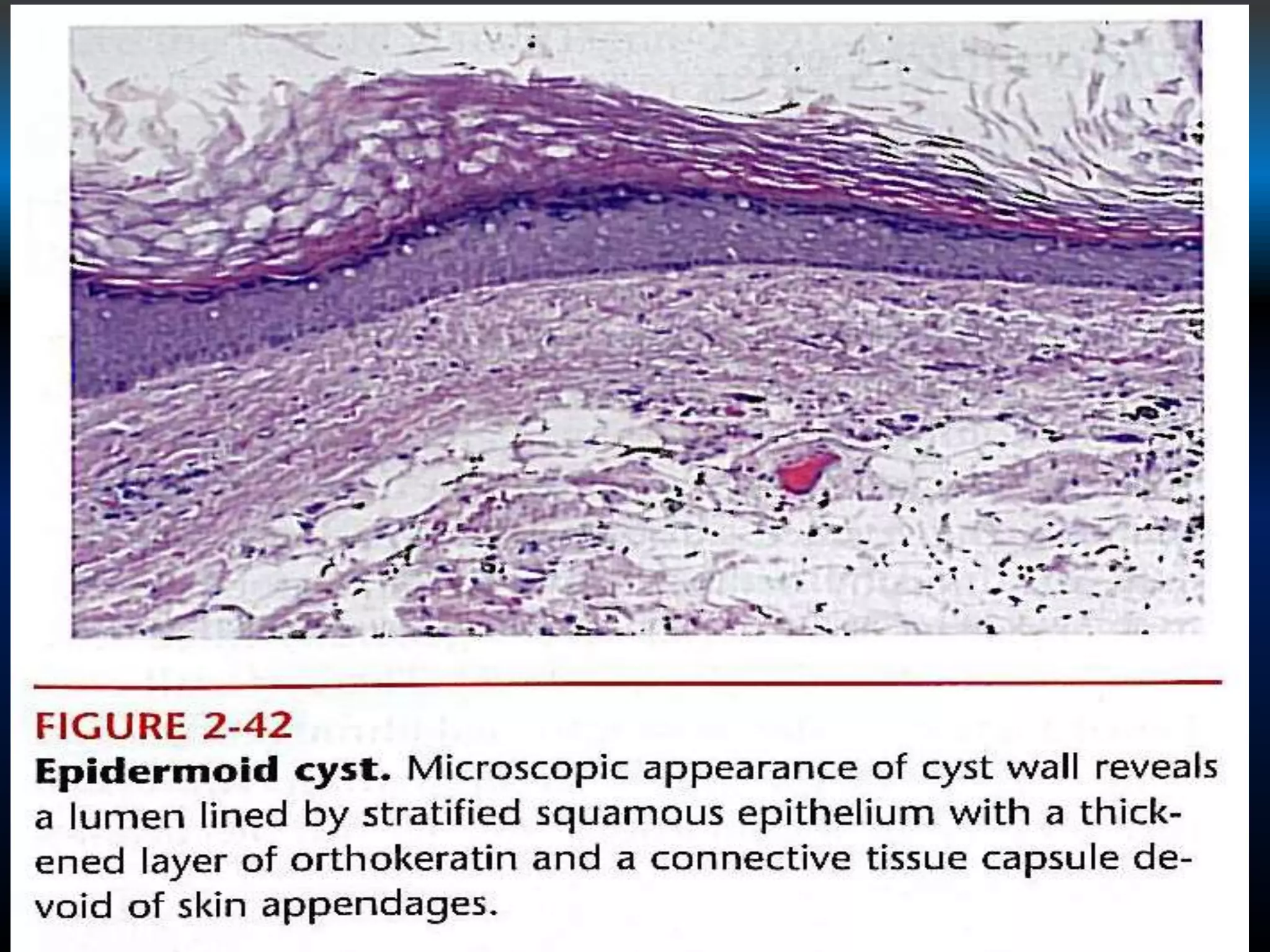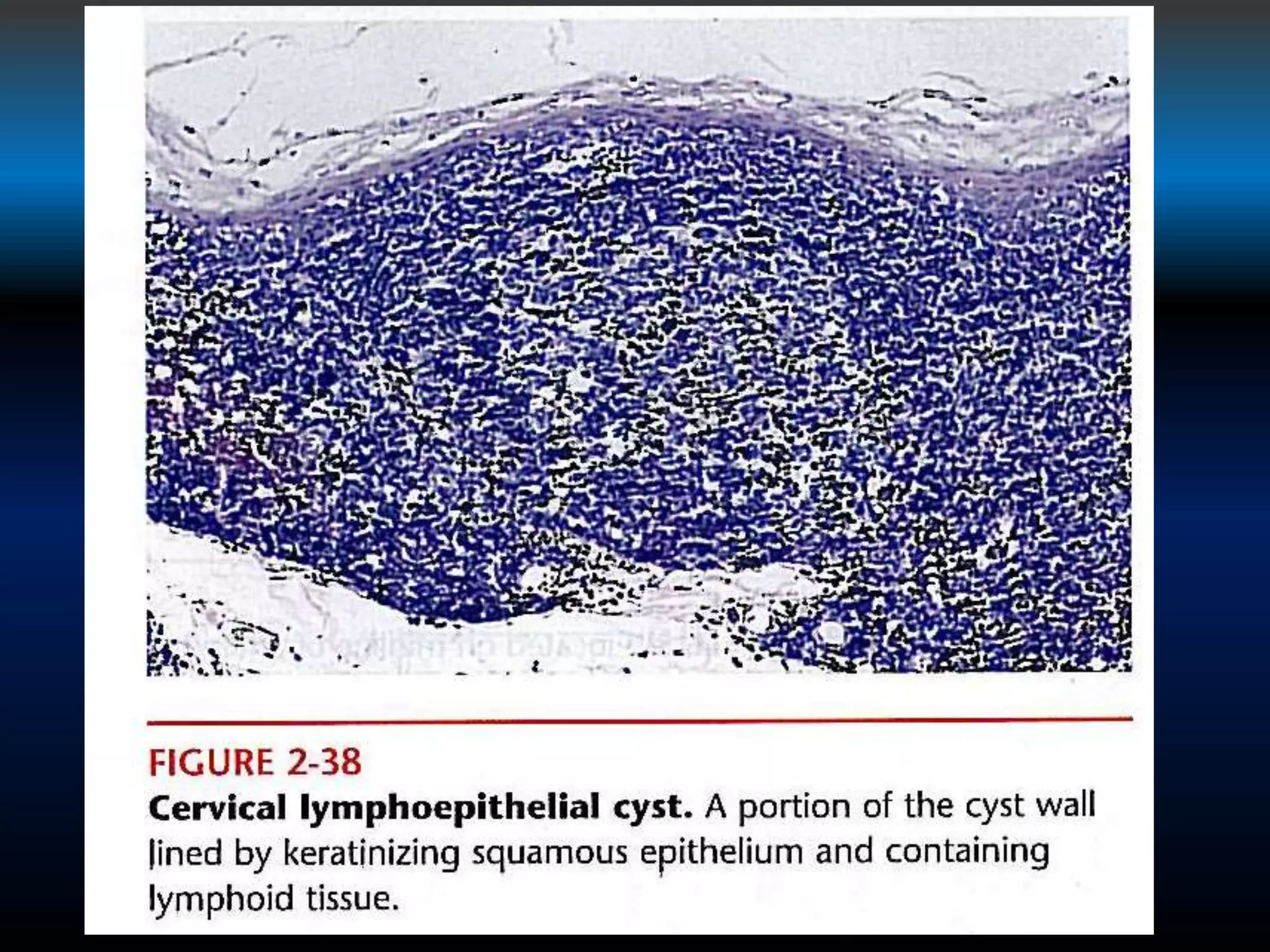 Developmental cysts can arise from epithelial remnants during embryonic development. The nasopalatine duct cyst arises from remnants of the nasopalatine duct in the midline maxilla. It appears on imaging as an oval radiolucency between central incisors. Histologically it is lined by respiratory, cuboidal, or squamous epithelium. Surgical enucleation is the treatment and recurrence is rare. The nasolabial cyst arises from remnants of the nasolacrimal duct in the soft tissues of the anterior maxilla. It presents as a unilateral swelling and is treated with surgical excision.