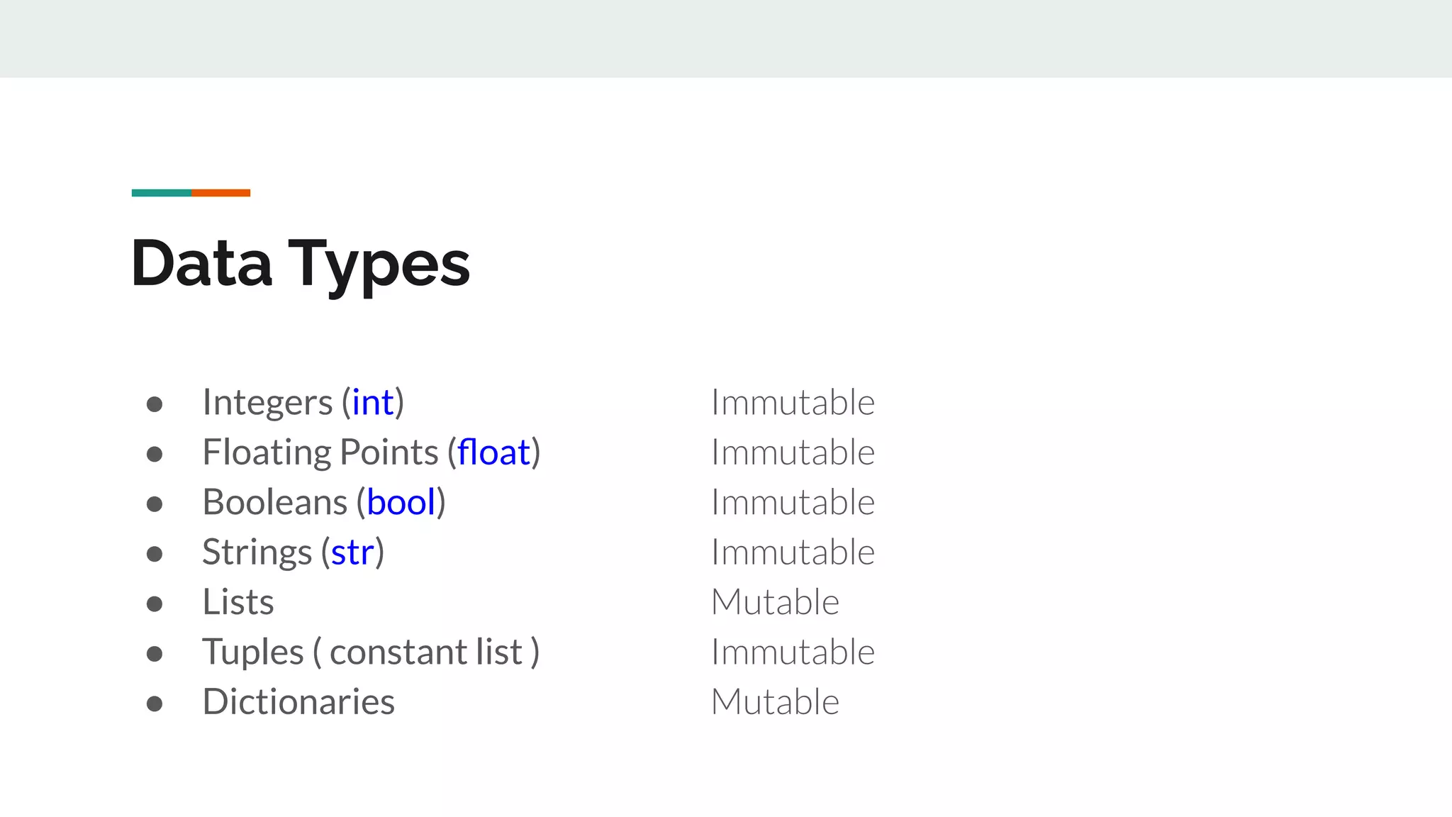 The document discusses Python data types and variables. It notes that integers, floating points, booleans, strings, and tuples are immutable, while lists and dictionaries are mutable. It also covers variable assignments, mutable vs immutable variables, functions, input/output, and type casting. Type casting allows conversion between data types, either implicitly during operations or explicitly by casting variables.