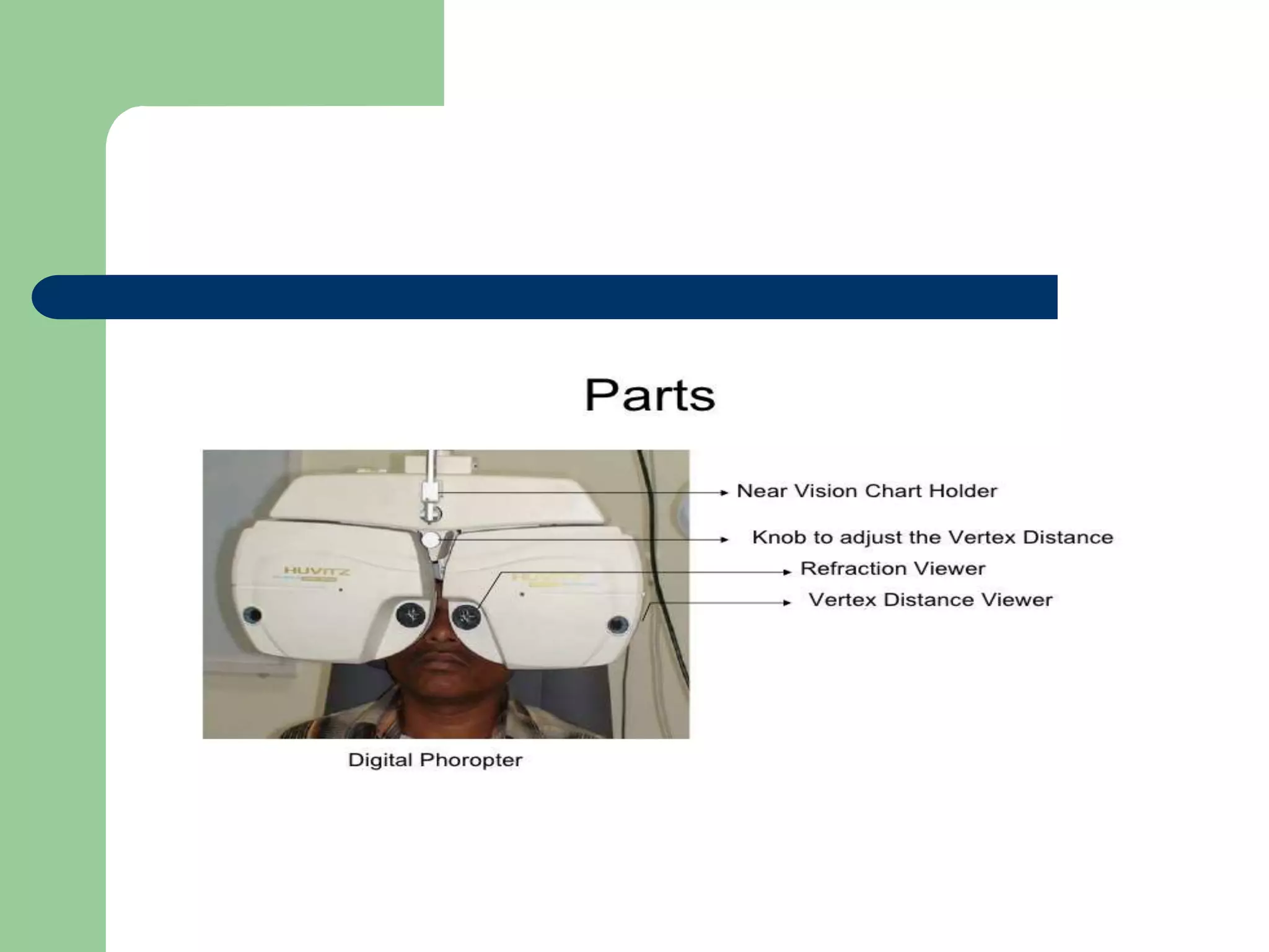 The phoropter is an instrument used in eye examinations to efficiently change lenses and perform subjective refraction. It contains controls for spherical and cylindrical lenses, auxiliary lenses, and adjustments for patient positioning. The refraction process involves preliminary steps to set up the phoropter for the patient. The subjective refraction then establishes the spherical power, refines the cylindrical axis and power, and balances the prescription between the two eyes. Tests like fogging, Jackson cross cylinder, duochrome, and pinhole are used to objectively verify the prescription.