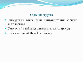 Sanhuugiin tailangiin shinjilgee 2