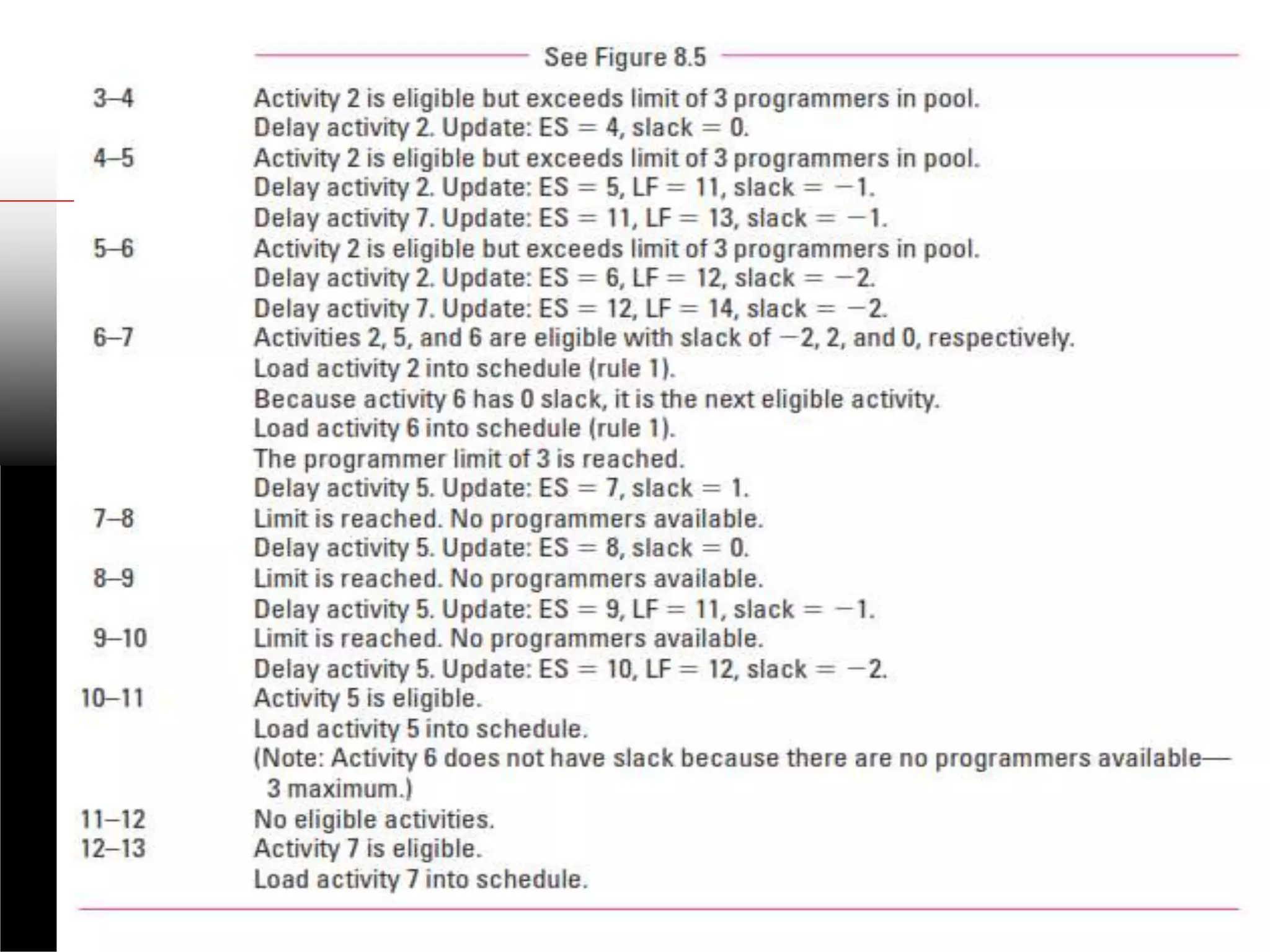 This chapter discusses resource scheduling and costs for projects. It covers determining resource availability and demands over time, leveling resource utilization, and dealing with resource constraints. Methods are presented for allocating limited resources to activities in time-constrained and resource-constrained projects. The impacts of resource-constrained scheduling are also reviewed, including reduced flexibility and increased sensitivity of schedules.