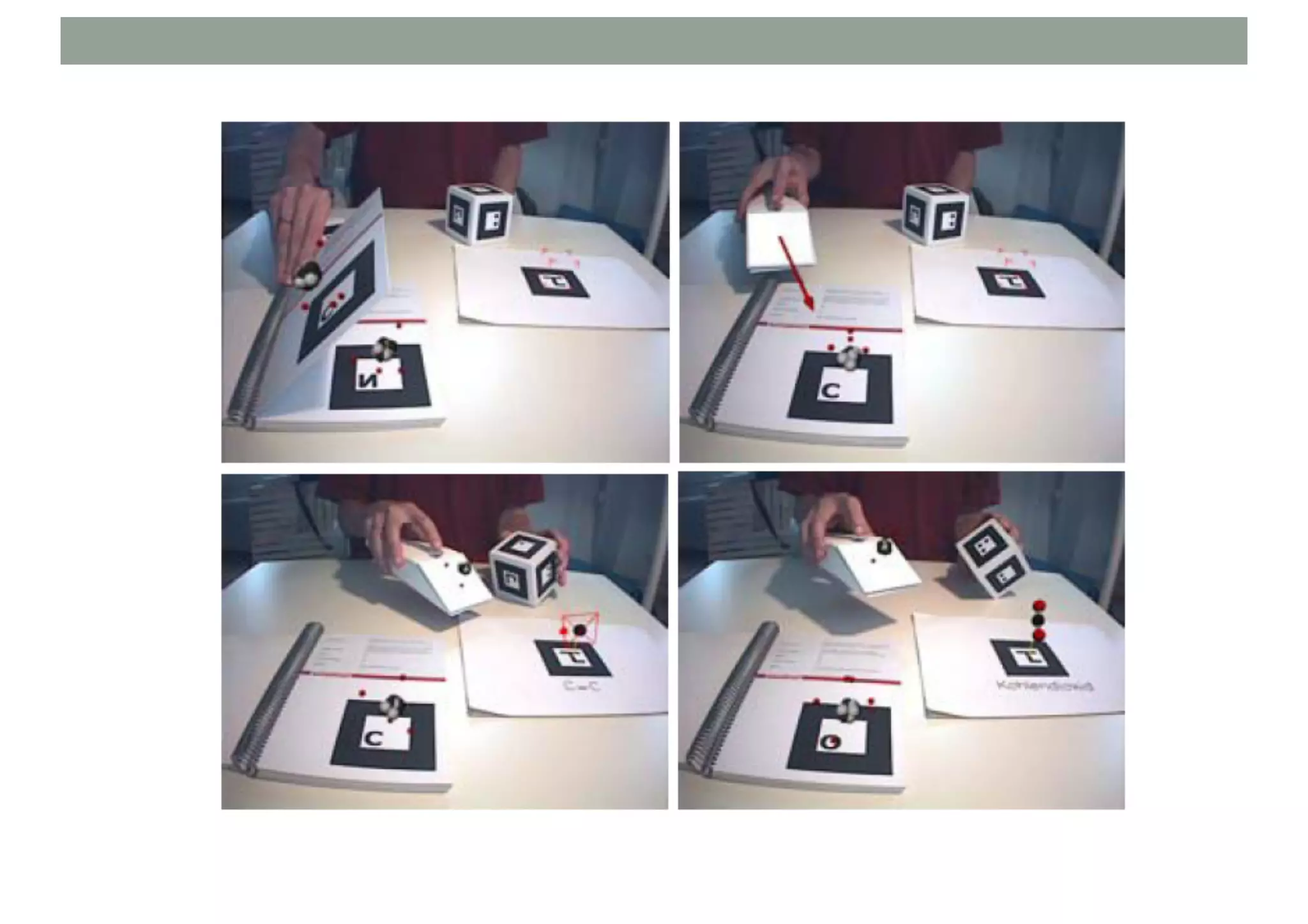 The document discusses augmented reality (AR) technology, emphasizing the combination of real and virtual images, tracking, and registration as critical components in AR interaction design. Various types of AR display technologies and interaction methods, including browsing interfaces and tangible user interfaces, are explored, highlighting their advantages and disadvantages. It also provides case studies demonstrating the application of AR in different fields, such as education and entertainment.