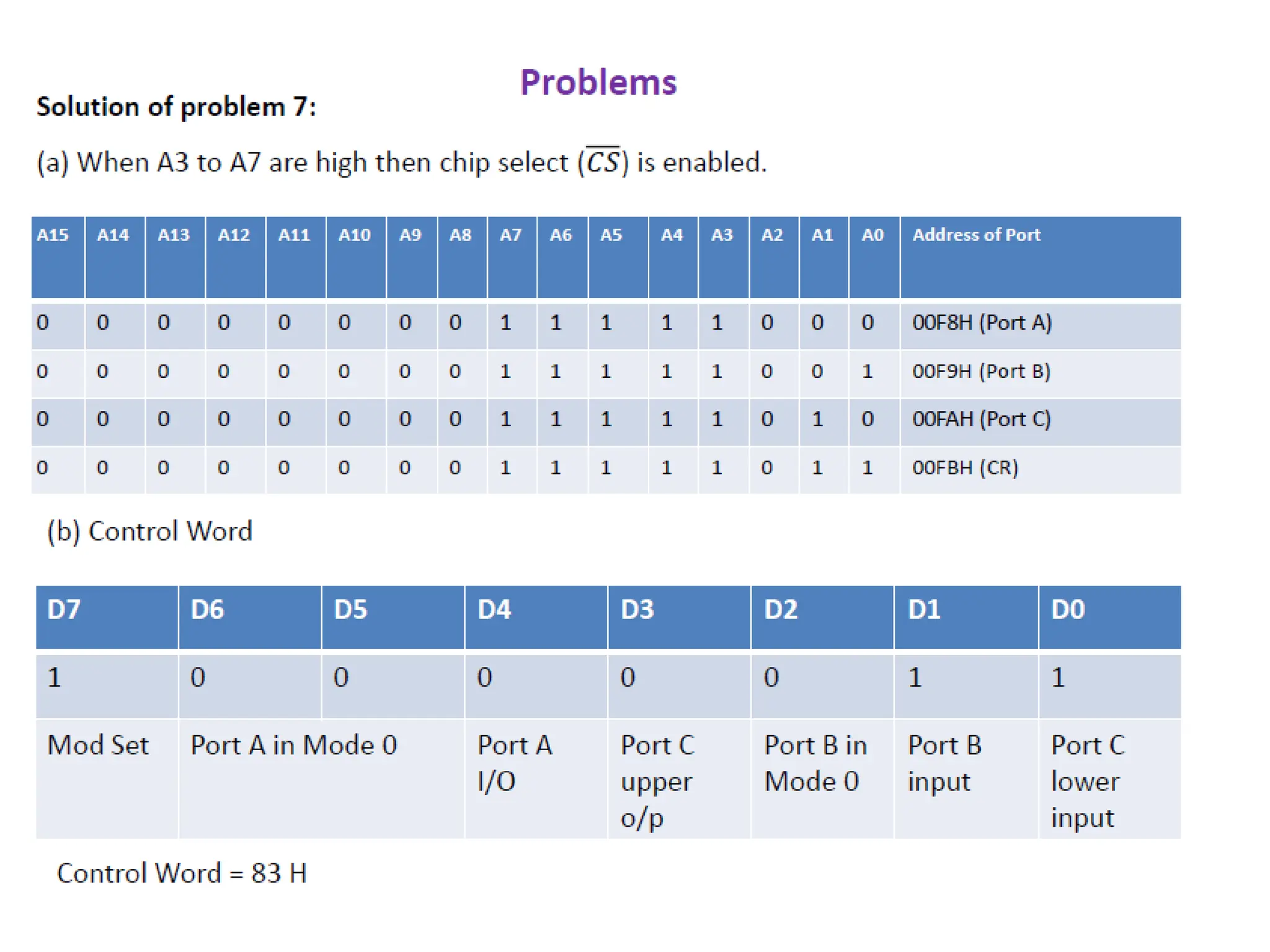 Problem 7: Figureshows an 8255A interfaced with 8086 microprocessor.