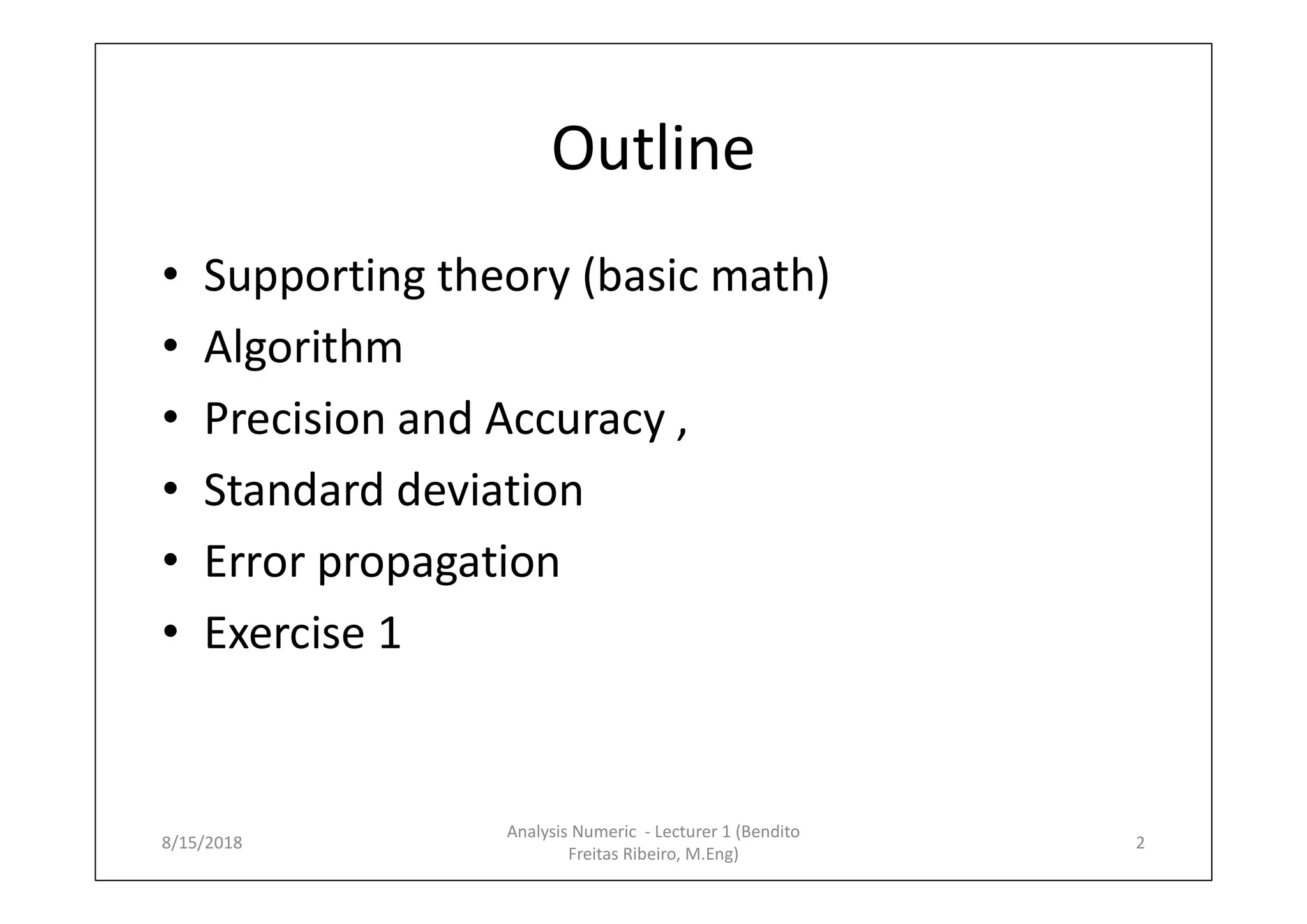 This document summarizes key concepts from a lecture on numerical analysis, including: