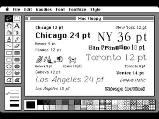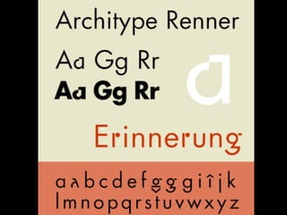 The document discusses typography, focusing on the history and characteristics of serif and sans serif typefaces, as well as the impact of typography on readability and emotional connection. It highlights the perspectives of notable figures like Steve Jobs and various font types including Garamond and Bodoni. The document also touches on the importance of selecting appropriate typefaces for different applications to enhance communication and aesthetic appeal.