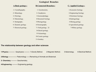 The document provides information about geology and the structure of the Earth. It discusses the following key points: