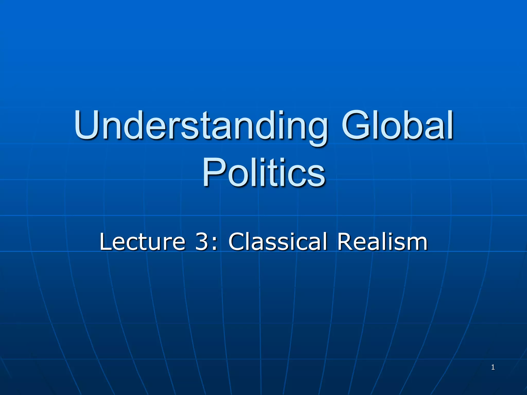 Classical realism is based on the empirical analysis of human nature and international politics. It is influenced by thinkers like Sun Tzu, Thucydides, Machiavelli, and Hobbes. Classical realists believe that sovereign states operating in an anarchic international system are the key actors, and they are primarily concerned with their own security and survival. In this self-help system without any overarching authority, conflict among states driven by their struggles for power is an inevitable reality.