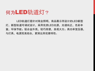 This document discusses LED lighting and its advantages over traditional incandescent and fluorescent bulbs. LED lights last significantly longer, are more energy efficient, and contain no mercury. They also come in a variety of form factors to suit different lighting needs.