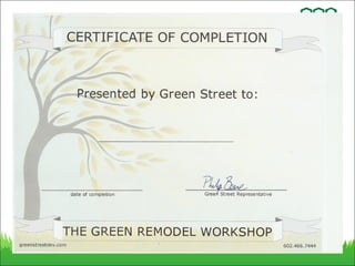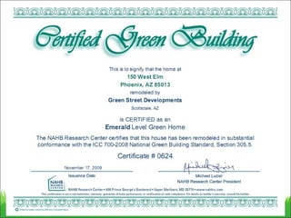 1) The document provides an overview of a 4-hour presentation on LEED certification and exam preparation. It includes a case study of a LEED-certified home remodel project in Arizona.