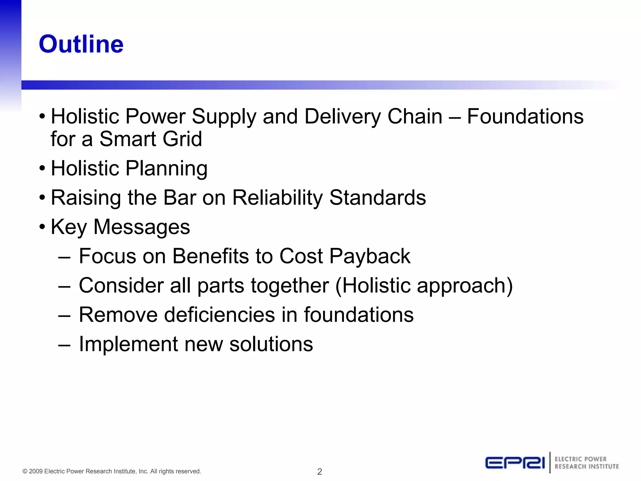 - Planning needs to take a holistic approach considering the entire power supply and delivery chain.