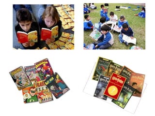 The document contains a list of 10 image links related to literacy, reading, and books. The links reference images of old comic books, novels like Harry Potter and Rayuela, illustrations of people reading, and diagrams about digital media and digital natives. Overall, the list focuses on images related to different forms and experiences of reading.
