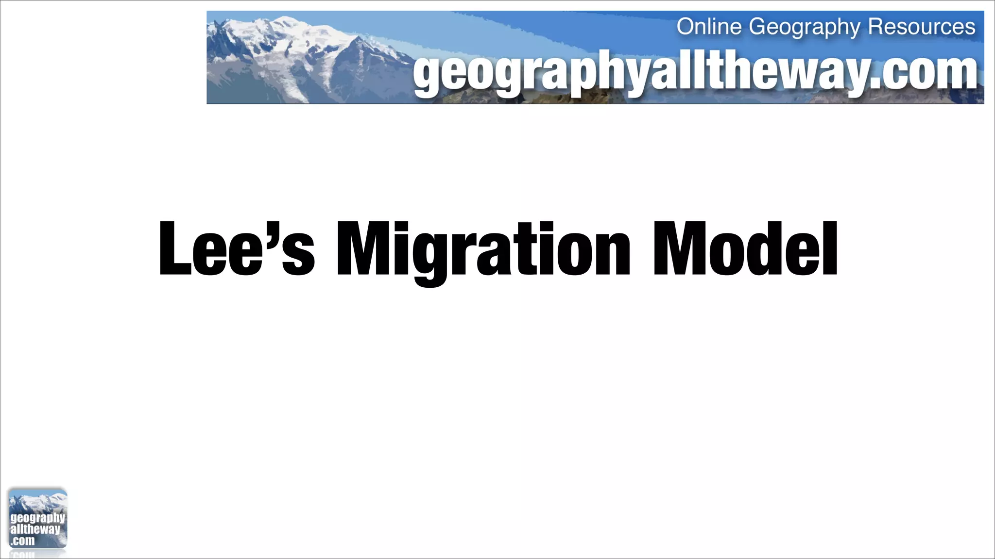 Lee's Migration Model shows migration between two locations, Location A and Location B. It depicts factors that can push people to leave Location A or pull people to Location B, as well as intervening obstacles between the locations that may hinder migration. The model illustrates the complex interplay of forces that influence people's movement between locations.