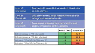 3. While CABG remains the standard of care for many patients, randomized trials found PCI with DES to have non-inferior outcomes to CABG at 1-2 years for death, MI, and stroke in selected patients with low complexity lesions. Rates