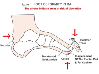 The document discusses the approach and classification of leg ulcers. It begins by defining a leg ulcer and classifying them as non-specific, specific, or malignant. The main causes of leg ulcers are then discussed, including venous insufficiency (80-85% of cases), arterial disease, neuropathy, infection, trauma, and malignancy. Diagnostic evaluation of a leg ulcer involves obtaining a thorough history and physically examining the ulcer, surrounding skin, and vascular and neurological systems. Key distinguishing features of venous versus arterial ulcers are also provided.