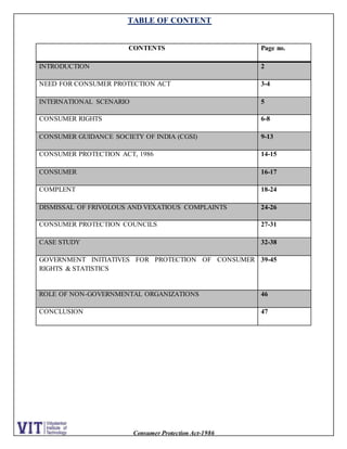 The Consumer Protection Act of 1986 was established to safeguard consumers in an era of globalization and e-commerce, shifting the focus from 'let the buyer beware' to 'let the seller beware'. It outlines consumer rights, including the right to safety, information, choice, and redress, addressing issues such as misleading advertising and spurious goods. The Consumer Guidance Society of India (CGSI) plays a pivotal role in educating consumers, resolving complaints, and promoting consumer rights throughout the nation.
