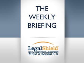 The document provides etiquette guidelines for attending a weekly briefing, which includes arriving early, dressing for success, turning off cell phones, staying seated and participating during the briefing, and asking guests questions afterwards to sign them up and get them started in the program. Guests should be introduced to the support team if they have questions, and negative guests should be removed so as not to interrupt the expert presenting.