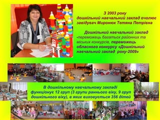 функціонує 12 груп (3 групи раннього віку, 9 груп