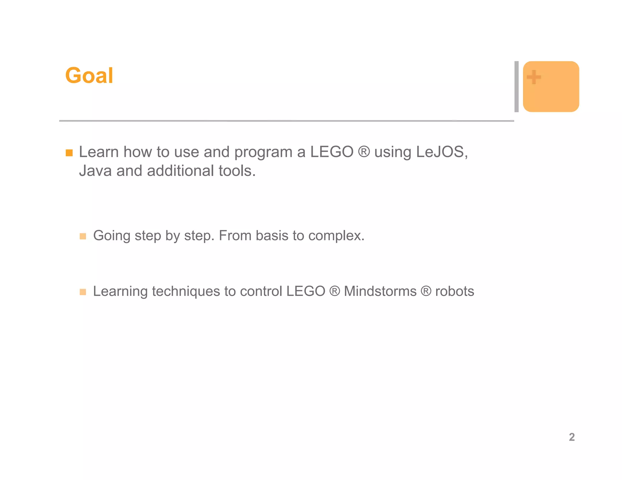 The document outlines an agenda for a tutorial on programming LEGO Mindstorms robots with Java, covering topics like installation, basic programming, navigation, behaviors, communication via Bluetooth, and speech and vision capabilities. It provides examples of code to control motors and sensors, implement behaviors, and send and receive data via Bluetooth. The goal is to teach techniques for controlling LEGO Mindstorms robots using Java programming.