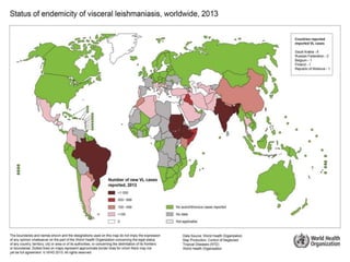 Leishmaniasis is a vector-borne disease caused by protozoan parasites from over 20 species of Leishmania, presenting in forms such as cutaneous, visceral, and muco-cutaneous leishmaniasis. The disease is transmitted primarily through bites from infected female sand flies, with differing transmission dynamics influenced by ecological settings, population mobility, and socioeconomic factors. Epidemiologically, leishmaniasis affects millions in developing regions, particularly in tropical and subtropical areas, with significant public health concerns stemming from cases in countries like India, Brazil, and Ethiopia.