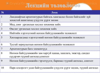 1-р лекц: Ландшафтынархитектурын байгаль