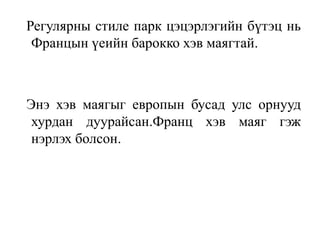 Регулярны стиле паркцэцэрлэгийн бүтэц нь