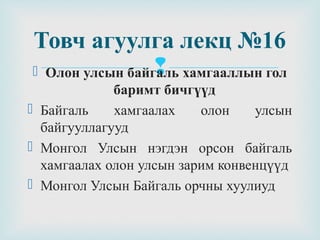 Байгаль орчны олон улсын гэрээ PPT