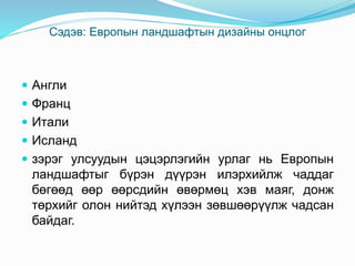 Сэдэв: Европын ландшафтындизайны онцлог