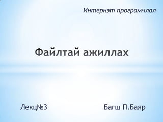 *Файлд бичих, файлхаах