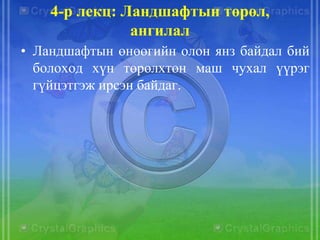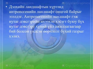 • Байгалийн ландшафтуудындэвсгэр дээр бий