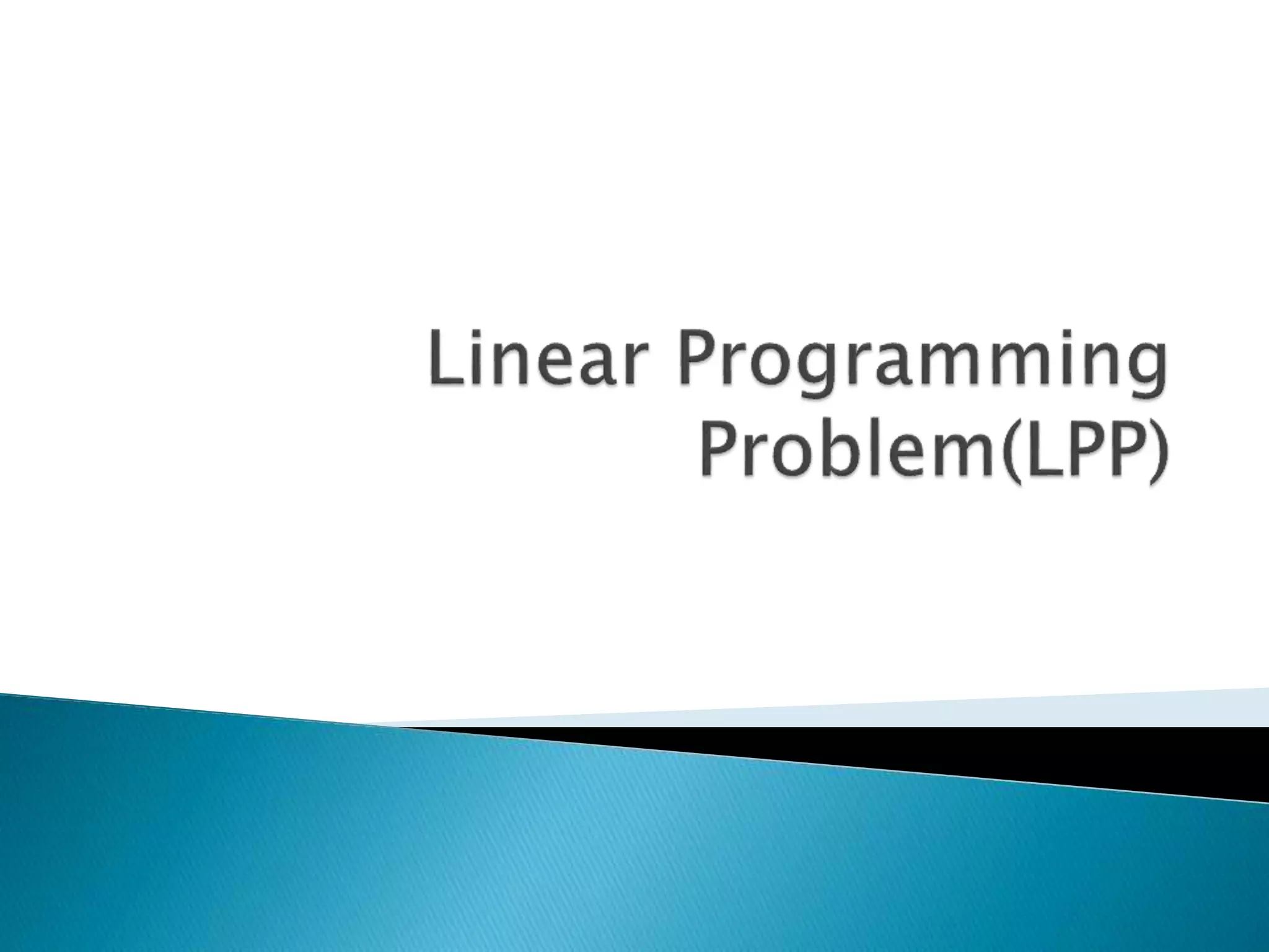 The document describes how to formulate and solve linear programming problems by defining the components of a linear programming problem, describing how to model real-world problems as linear programs, and outlining two methods, graphical and simplex, to solve linear programming problems. It then provides examples of solving linear programming problems using these steps and methods.
