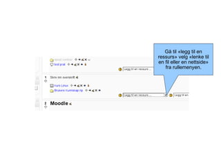 Gå til «leggtil en ressurs» velg «lenke til en fil eller en nettside» fra rullemenyen. - 3.