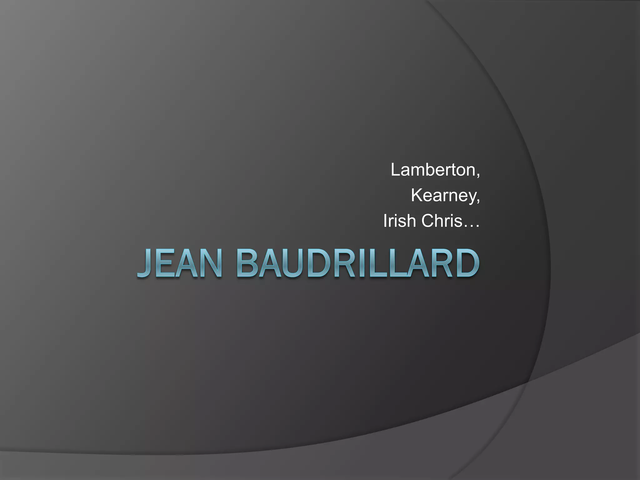 This document discusses incorporating Jean Baudrillard's theories of simulacra, simulation, and hyperreality into a group project about media representation. It defines these key concepts, such as simulacra referring to signs that have lost their connection to reality and instead simulate simulations. An example is given of how hyperreality can occur when reality TV stars model themselves after soap opera characters who are based on ideas of real life, making the original idea of real life obsolete. References are included.