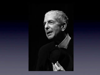 The document contains excerpts from several poems and songs by Leonard Cohen spanning 1977 to 1992. In 3 sentences: The excerpts explore themes of loss, longing, love, faith and politics. They include the ballad of a cowboy searching for his missing horse, contemplations on religion and spirituality, and calls for democracy. The selections showcase Cohen's lyrical style and ability to address profound topics through poetry and music.