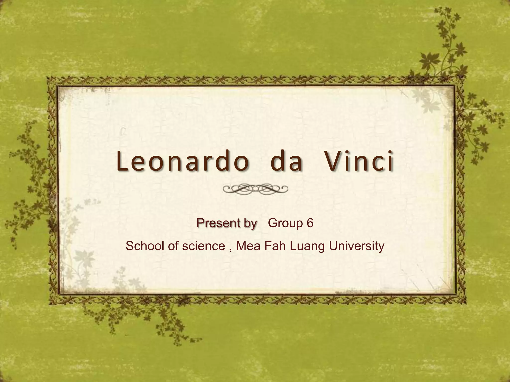 Leonardo da Vinci was an Italian polymath who lived from 1452 to 1519. He is famous for his paintings such as the Mona Lisa and The Last Supper. He was also a scientist and inventor who made many detailed observations and drawings on topics like anatomy, astronomy, and engineering. Some of his most important relationships were with his teacher Verrocchio and his pupils Melzi and Salai. His paintings are renowned for their mastery of techniques like sfumato shading and linear perspective. He also kept extensive journals documenting his scientific studies and inventions.