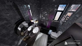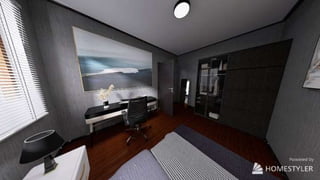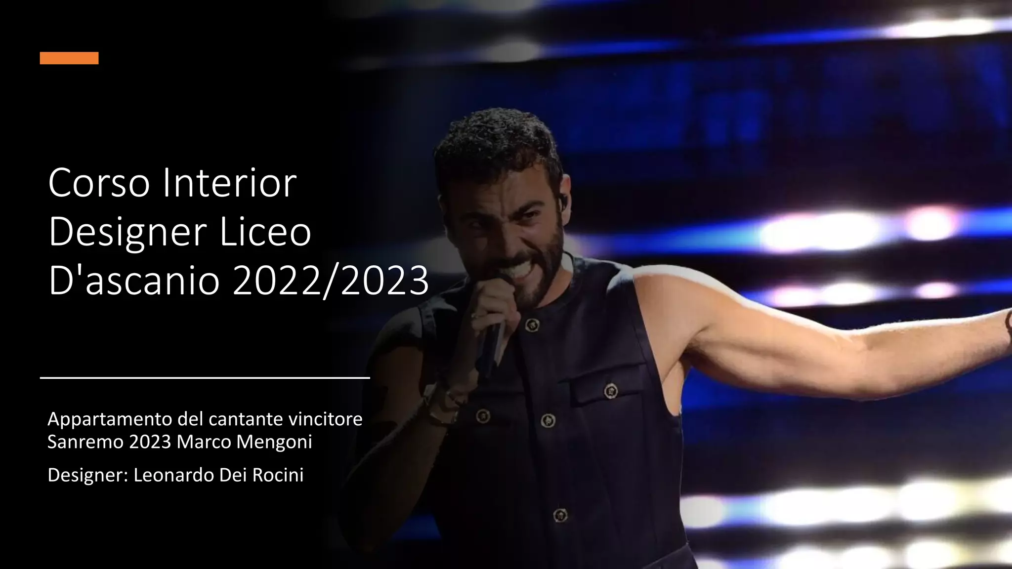 Il documento descrive il progetto di interior design di un appartamento di Marco Mengoni, vincitore del Festival di Sanremo 2023. Il design combina tonalità scure e materiali come pelle sintetica, creando uno spazio minimalista ma accogliente, adatto sia per la tranquillità personale che per ospitare. L'appartamento include una camera da letto funzionale, un bagno con doccia e un'area soggiorno con cucina.
