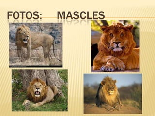 CARACTERÍSTIQUES:-Poden arribar adormir vinthoresal dia.-Els mascles grans arriben a 250 kg de pes.-Les femelles arriben als 120-182 kg de pes.-Les femelles no tenen cabellera en canvielsmascles si.