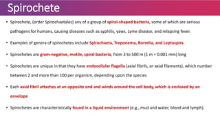 Leptospira bacteria cause leptospirosis, a disease primarily affecting mammals that can lead to severe human health complications, including liver and kidney failure. The illness presents in two phases, starting with acute symptoms such as fever and muscle pain, followed by a possible immune response phase. Diagnosis is challenging due to variable symptoms, and control measures include reducing animal reservoirs and using antibiotics for treatment.