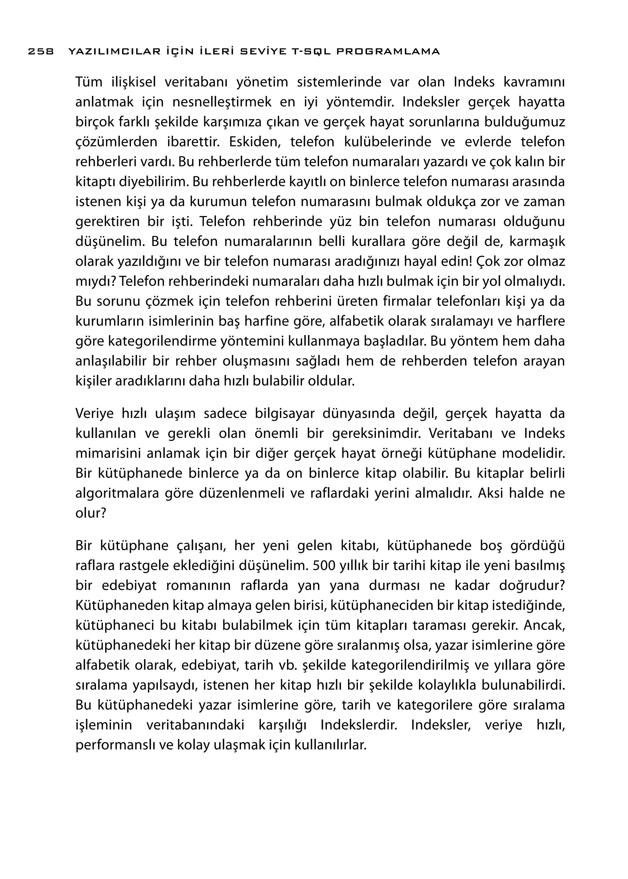 İndeks kavramı, veritabanı programlamaya yeni başlayanlar için anlaşılması