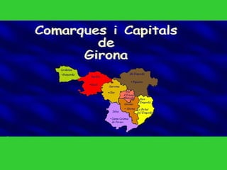 Comarques i capitals(costaneres ) Alt Empordà capital Figueres Baix Empordà “ La Bisbal d’Empordà La Selva “ Santa Coloma de Farners Maresme “ Mataró Barcelonès “ Barcelona Baix Llobregat “ Sant Feliu de Llobregat Garraf “ Vilanova i la Geltrú Baix Penedès “ El Vendrell Tarragonès “ Tarragona Baix Camp “ Reus Baix Ebre “ Tortosa Montsià “ Amposta
