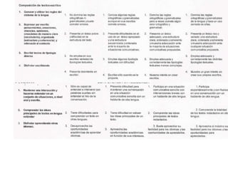 La competència comunicativalingüística (a tota Espanya) i audiovisual ( a Catalunya): estructurada en dimensions. ORAL (PARLAR I ESCOLTAR): Recursos útils verbals i no verbals. Exposició preparada. Valoració i respecte intercultural. Interès per la millora en el discurs oral propi. Comprensió i retenció idees essencials mitjançant apunts, esquemes…( escoltar) LLEGIR: Textos continus i discontinus ( Proves PISA) Síntesi, resum, esquemes… Análisi d’icones i símbols de la vida quotidiana==llenguatge no verbal. Interpretació de textos de la vida diària lingüístics i no lingüístics ( llistes de preus, gràfics, instàncies, certificats, mapes, plànols, normes d’ús…) Valoració de la lectura. Control i avaluació del procés lector. Valoració de la importància de les biblioteques, d’Internet… Escamilla (2008)