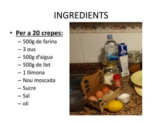 • Poseual bol la farina, els ous, l’aigua i la llet