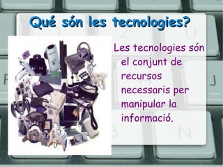 tecnologies? Les tecnologies són el conjunt de recursos necessaris per manipular la informació.