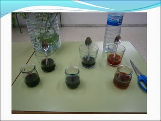 • L’aigua puja per la tija i arriba fins a les fulles,