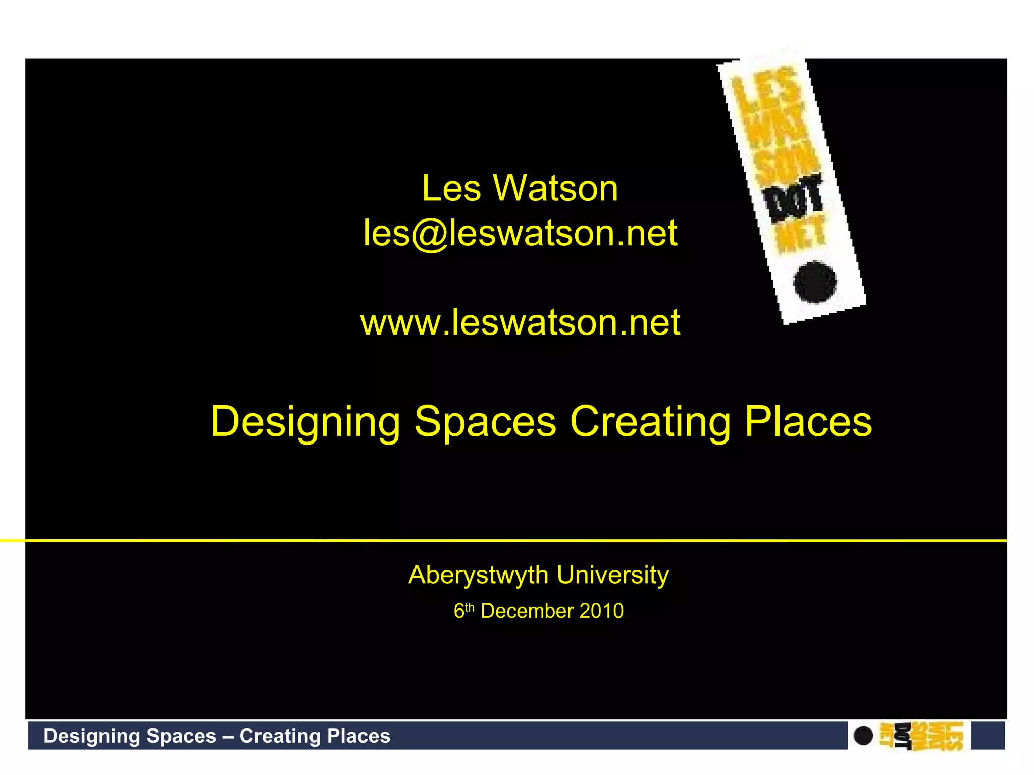 The document discusses ideas around designing university spaces for the 21st century. It touches on several key ideas including the need for open, flexible spaces that support collaborative and conversational learning. It also emphasizes that spaces should be designed not just as architecture but with consideration of how they can promote learning and community. The library is highlighted as a key space that needs to embody new pedagogies and serve as the central intellectual hub of the campus.