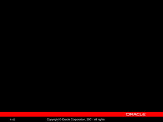 This document discusses different types of joins that can be used to combine data from multiple database tables. It covers equijoins to combine tables based on matching column values, outer joins to include rows that don't meet the join condition, and self joins to join a table to itself. The document provides examples of SQL syntax for performing these operations using both Oracle proprietary syntax and SQL:1999 compliant syntax.