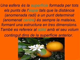 L'esfera 2. Una esfera és la superfície formada per tots