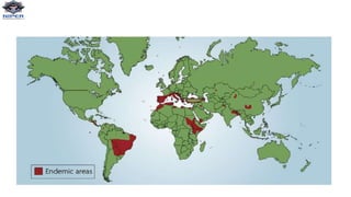 Leishmania donovani is the causative agent of visceral leishmaniasis (VL), a neglected tropical disease predominantly affecting impoverished populations in Africa, Asia, and Latin America. VL presents with symptoms like fever, weight loss, and splenomegaly, and can be fatal if untreated; the disease is transmitted through bites from infected female sandflies. Diagnosis relies on various methods including parasitological examination and serological tests, while treatment options include medications like pentavalent antimonial and miltefosine, with no available vaccine for prevention.