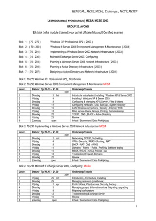 Elk blok ( elke module ) bereidt voor op het officiele Microsoft Certified examen